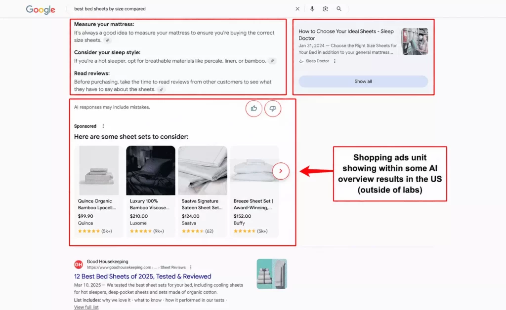 One critical restriction advertisers need to know: Google currently excludes sensitive verticals from AI Overview ad placements, including healthcare, finance, and certain other regulated categories. If you run campaigns in these verticals, your ads appear around AI Overviews rather than within them. This changes the strategic approach for those accounts significantly.