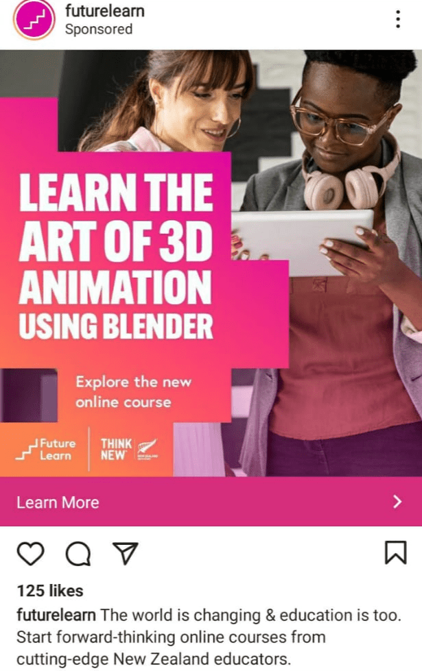 Instagram, initially developed as a visual platform, allows you to complement your ads with images. After all, a picture is worth a thousand words, or even more! Your ad writers can take a cue or inspiration from the picture for writing text or captions for the ad.