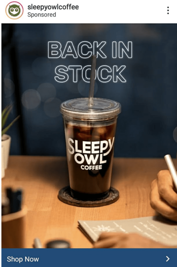 Simplicity is believed to be the central point which makes your online advertising effective. As above in the example of Sleepy owl coffee, we can see that how simply they are informing consumers about their product availability in stock. Thus, many online ads makers advocate that your ad gets a huge response when they are simple and easy for viewers to understand.